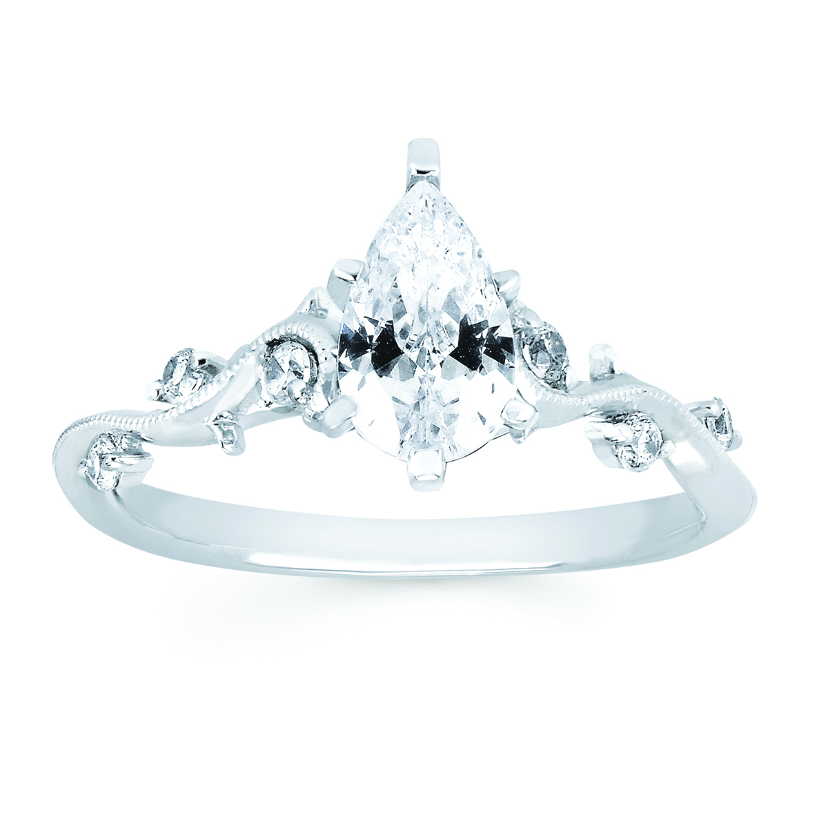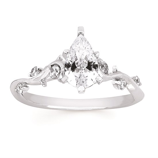Engagement Ring Forever ElegantĀ® 1/8 Ctw. Diamond Semi Mount shown with 3/4 Ct. Pear Center Diamond in 14K Gold