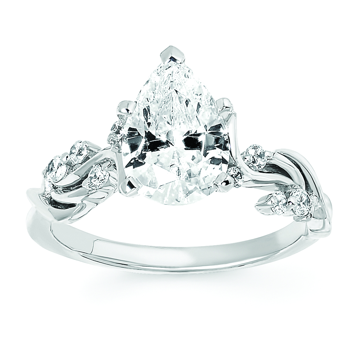Engagement Ring Forever ElegantĀ® 1/6 Ctw. Diamond Semi Mount shown with 2 Ct. Pear Center Diamond in 14K Gold