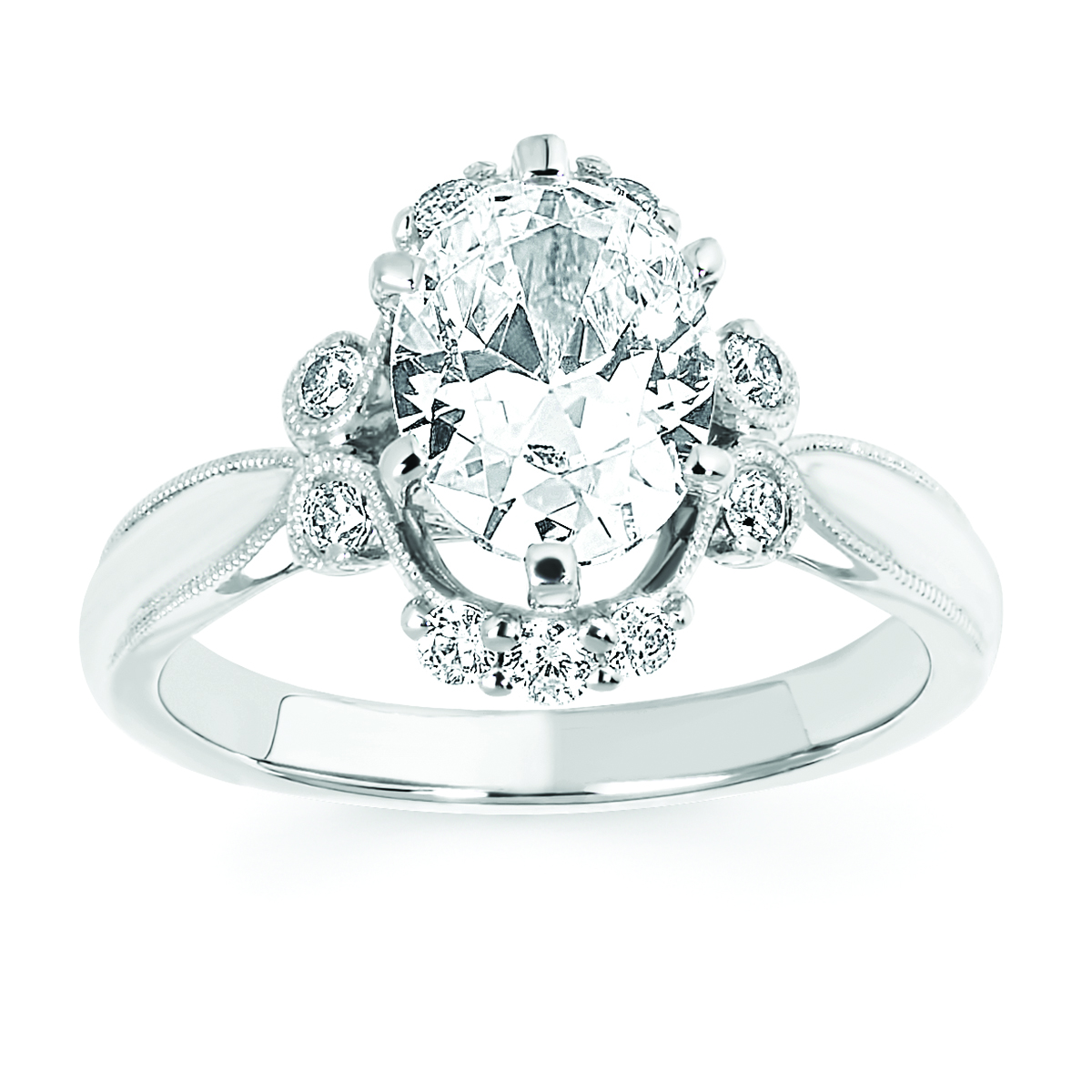 Engagement Ring Forever ElegantĀ® 1/4 Ctw. Diamond Semi Mount shown with 1 1/2 Ct. Oval Center Diamond in 14K Gold